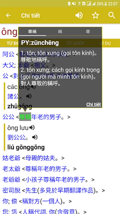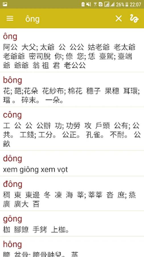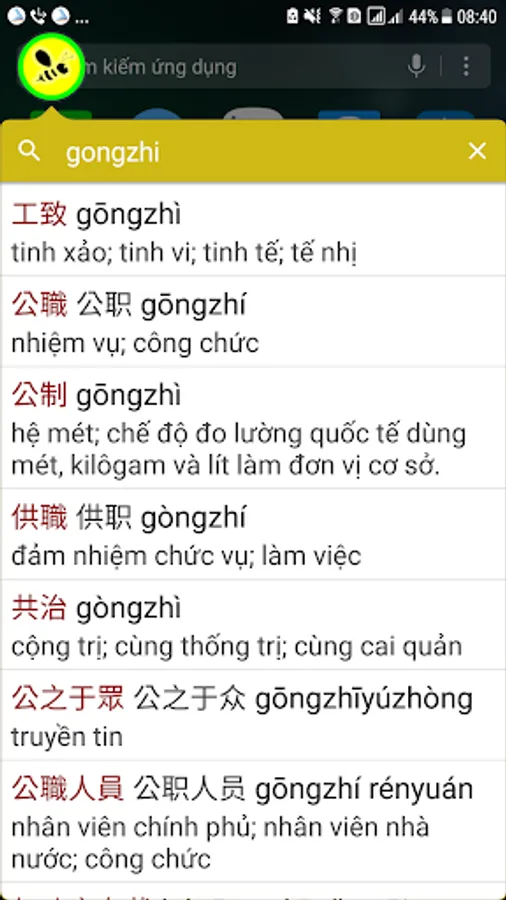 The Chinese-Vietnamese dictionary BeeDict supports word translation with the following functions: