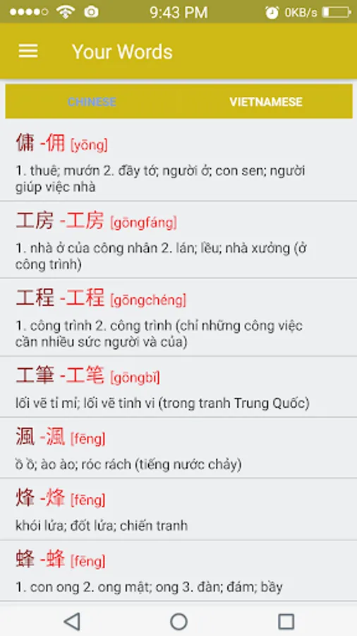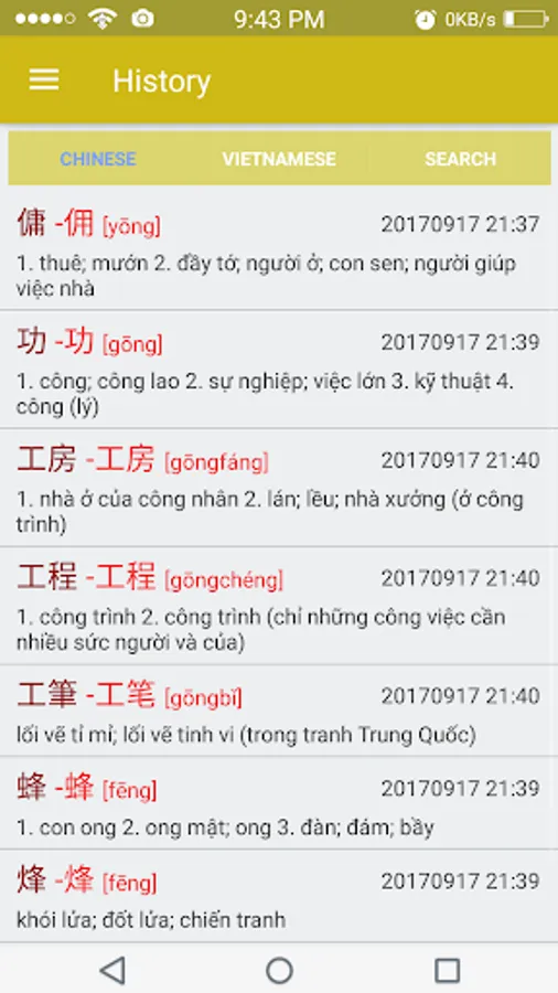 * Word History: Keep track of Chinese, Vietnamese, and Search key history.