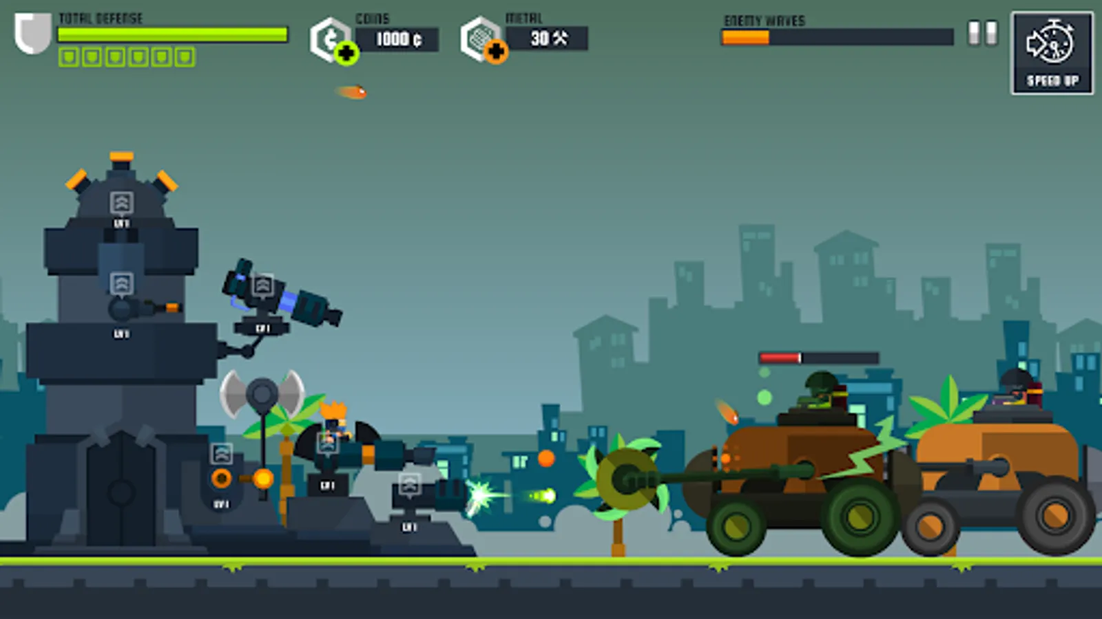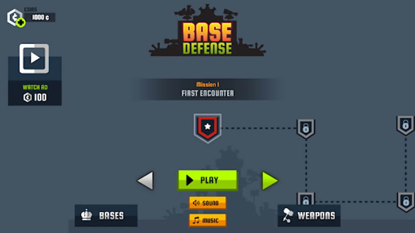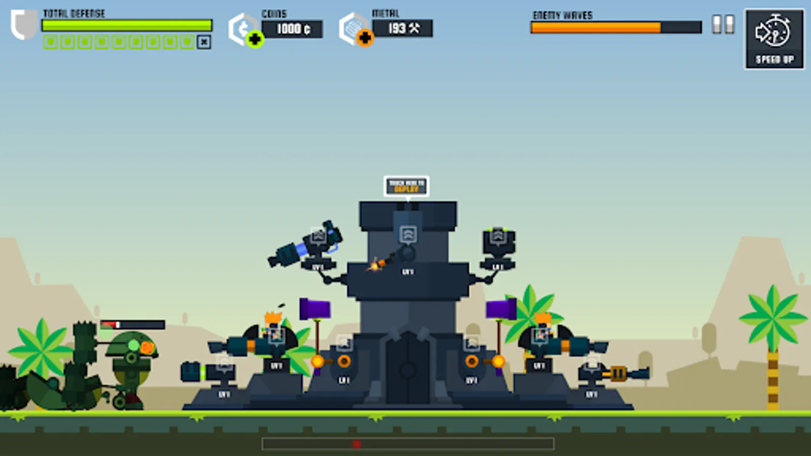 Base Defense is a tower defense game where you try to prevent enemies from destroying your base by deploying various types of weapons. These weapons are fully upgradeable with the gold coins and metal you can scrap from fallen enemies. Make sure to purchase new equipment when they are available such as gunners, sentries, triple shooters and even throwing axes! It is very fun to watch your machine minions do all the work while you plan your tactics. Go ahead and give Base Defense a try!