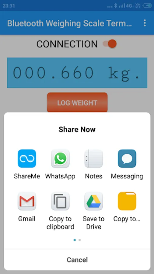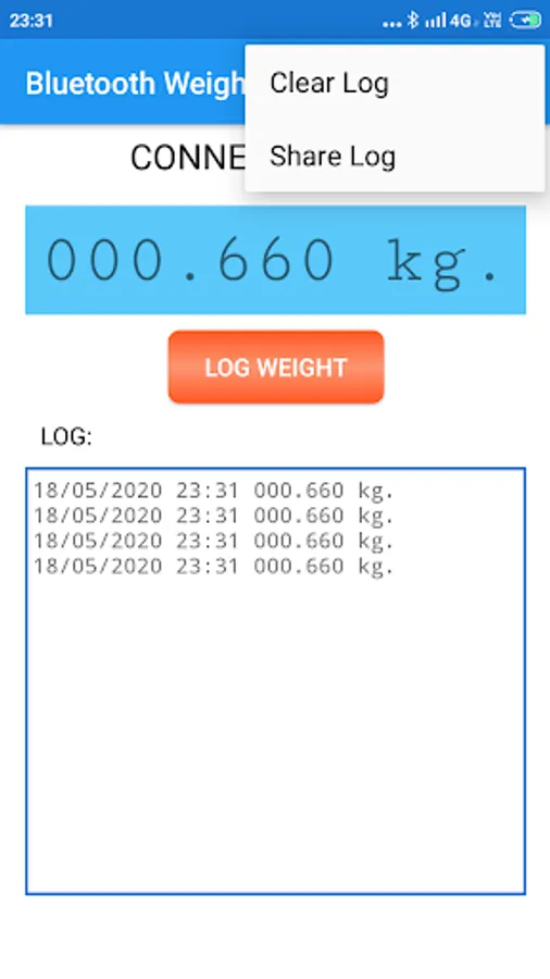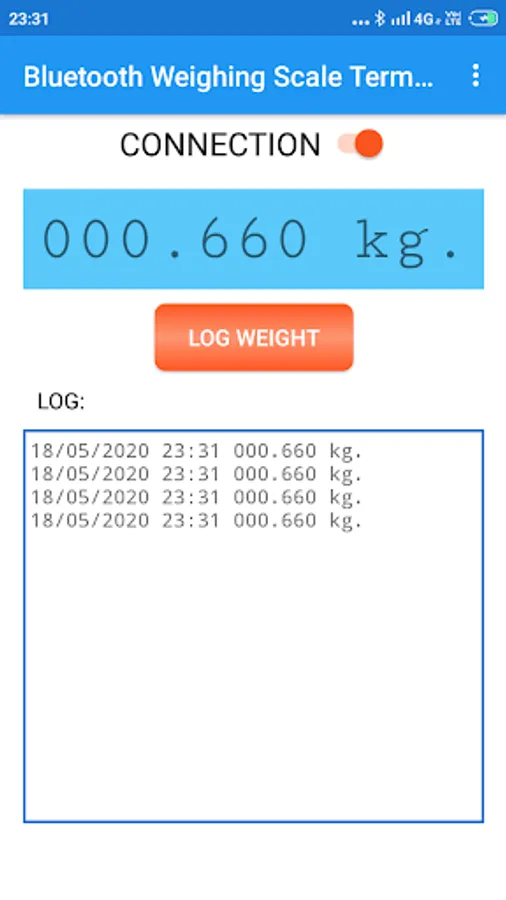 4. You should now see the weight from the weighing scale on your Android app.