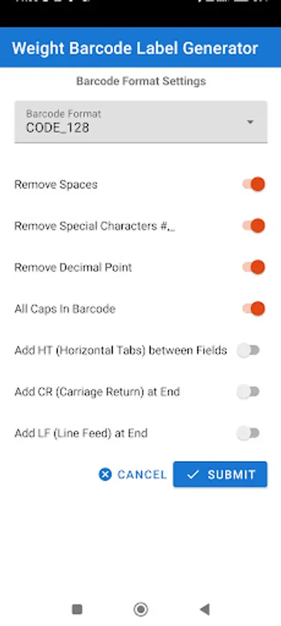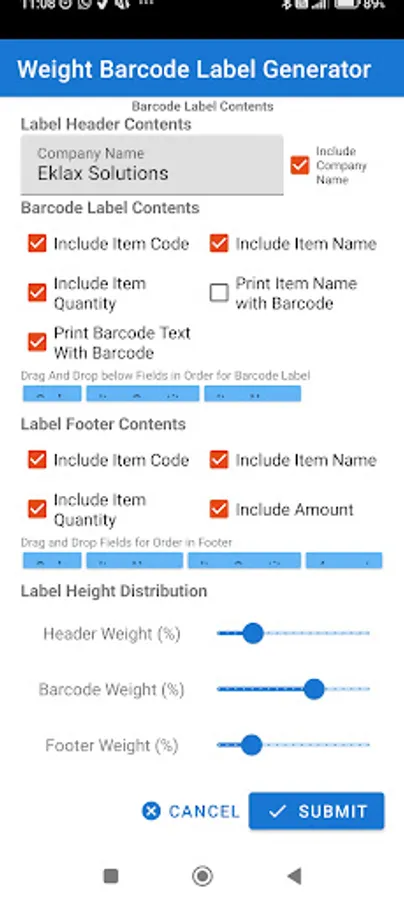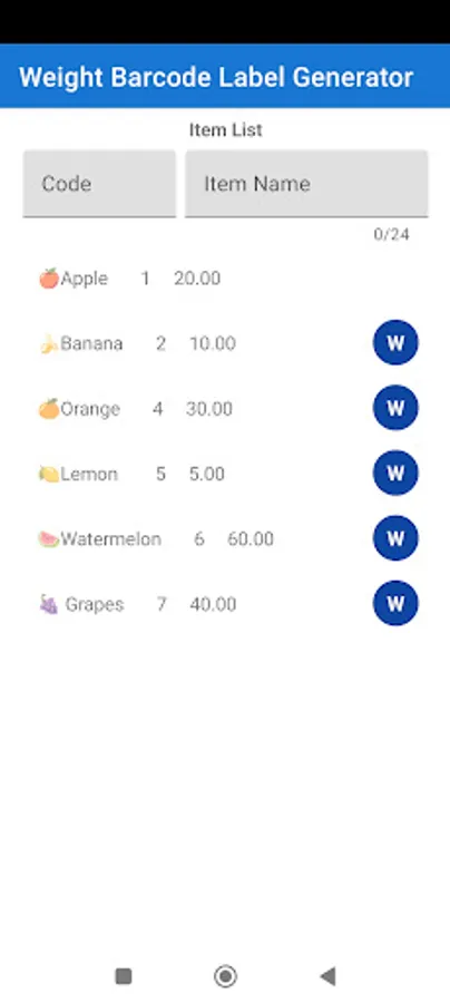 An item database inside the barcode generator for weight app can be used to add item code and other details to barcode. If an item is not sold by weight user is facilitated to enter quantity manually by the app.
