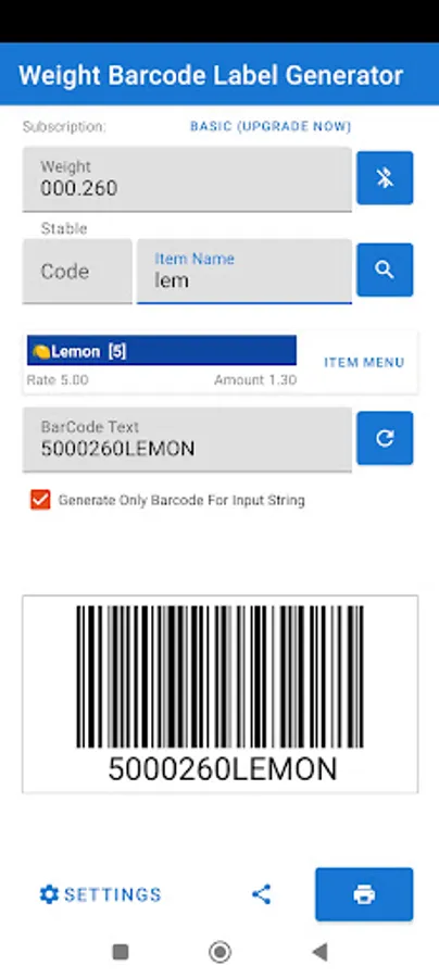 This app generates barcode labels with weight and any other item detail which can be printed directly to a connected printer.