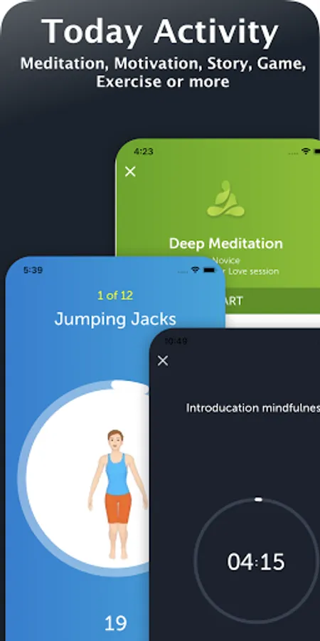 You have provided daily exercise in review your mood, like - Meditation, Physical exercise, Game, Motivation, Story, Choose your path or more