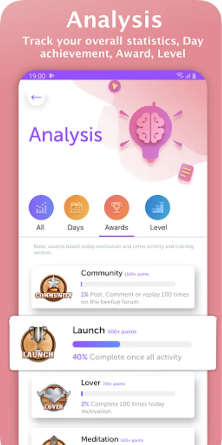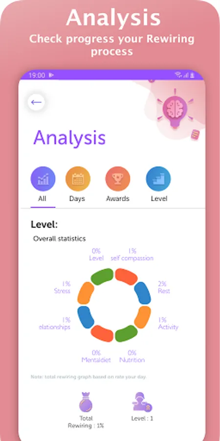 You have track your progress for rewiring your brain and track your new goal and list of award and check your level for achievement.