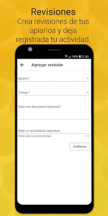 • Hive management: Users can create and store detailed information on each hive by apiary, including the current status, the health of the bees, among other relevant aspects.