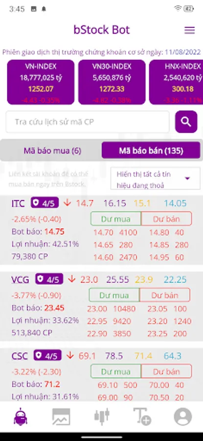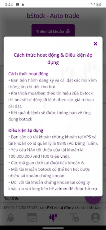 + Autotrade feature automatically trades on securities accounts at securities companies - First time available in Vietnam market.