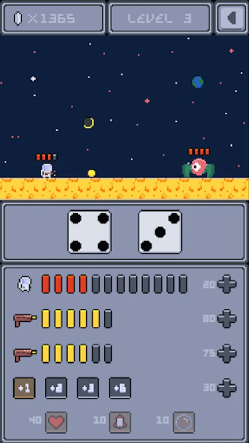 Dice your way through the galaxy: fly from planet to planet and use the dice to beat strange creatures in turn-based battles!