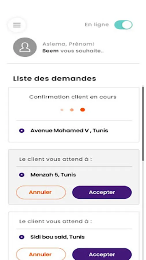 a taxi driver's trip management application for managing customer requests