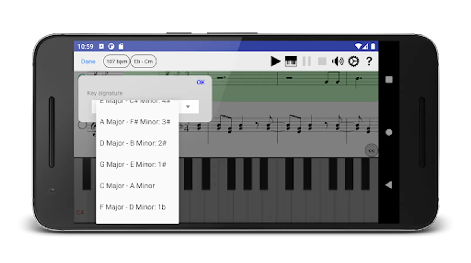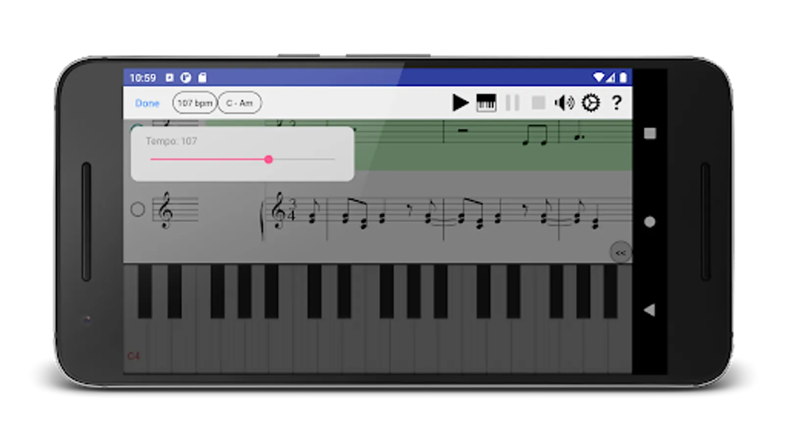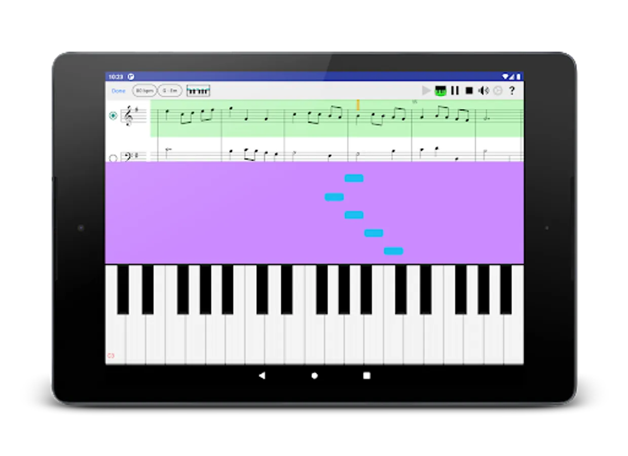 - You can practice with the piano keyboard on the app screen or connect your device to a MIDI controller or digital piano.