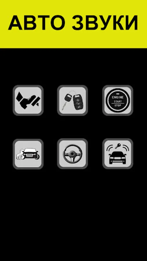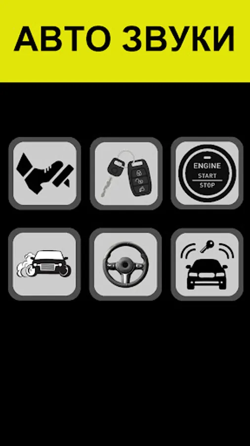 The Car Sounds app contains a large collection of sound effects that cars make. This is the roar of a car muffler, exhaust, engine, alarm and others. At the same time, there is a choice of different brands of cars: BMW, Mercedes, VAZ, Lamborghini, motorcycle, etc. There are also sounds from the car key - closing and opening, arming the alarm.