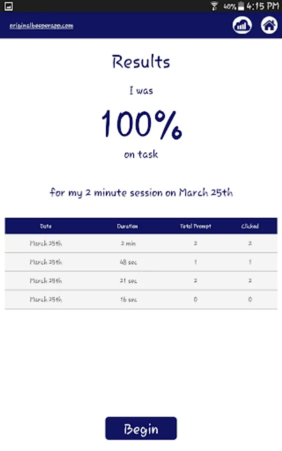 The Original Beeper App™, developed by a licensed mental health provider, is designed to assess your level of attention on any given task and record these results.