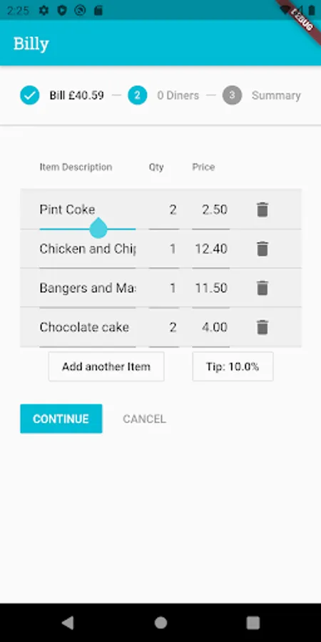 Just take a picture of your bill in a restaurant or bar, Billy will automatically scan the bill and pull out each of the items. Then each person says what they are paying for. You can add a tip, and then see how much everyone needs to pay.