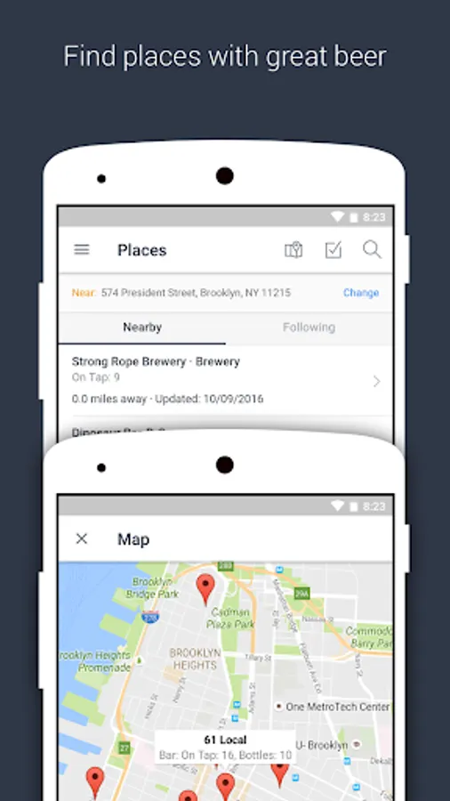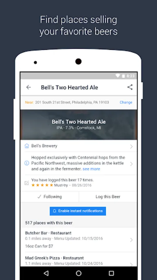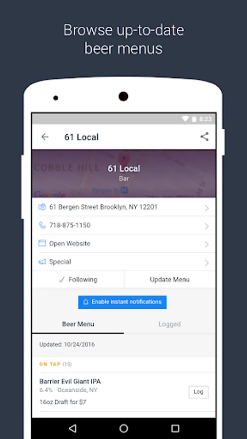 • Discover your favorite new place by browsing up-to-date beer menus around you.