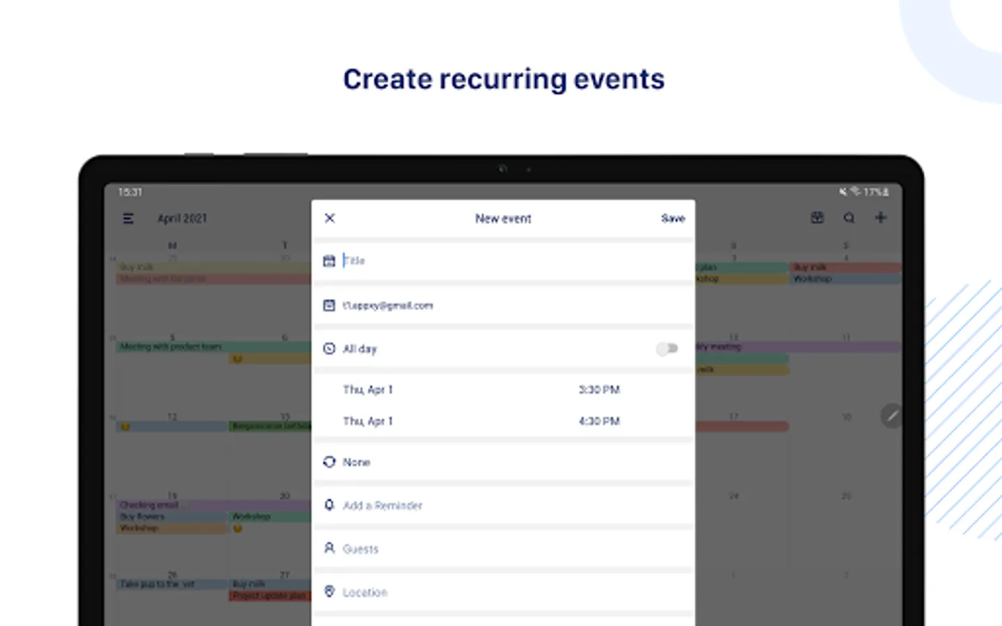 Never forget about a meeting! Tiny Calendar allows you to set multiple reminders for an event.