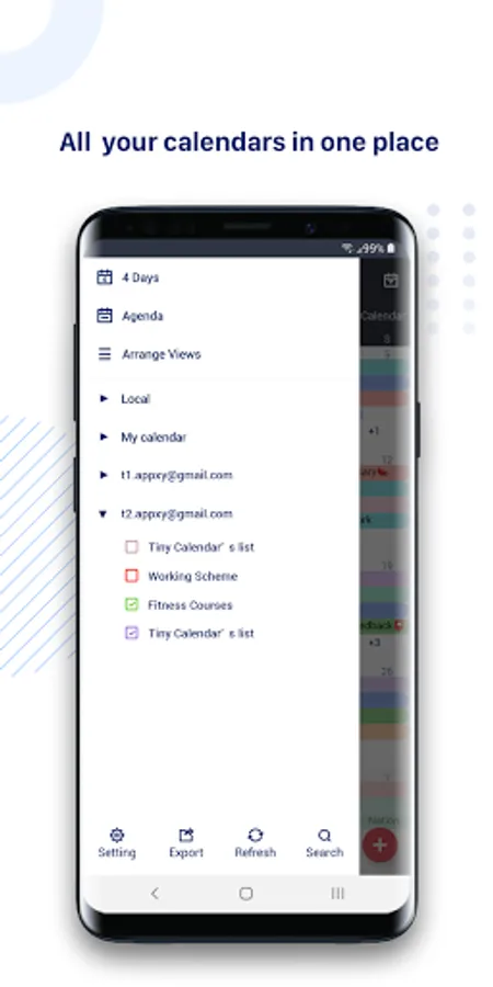 Tiny Calendar has features like drag and drop, gestures and other smart methods to predict your intention and help you create and edit your events more easily.