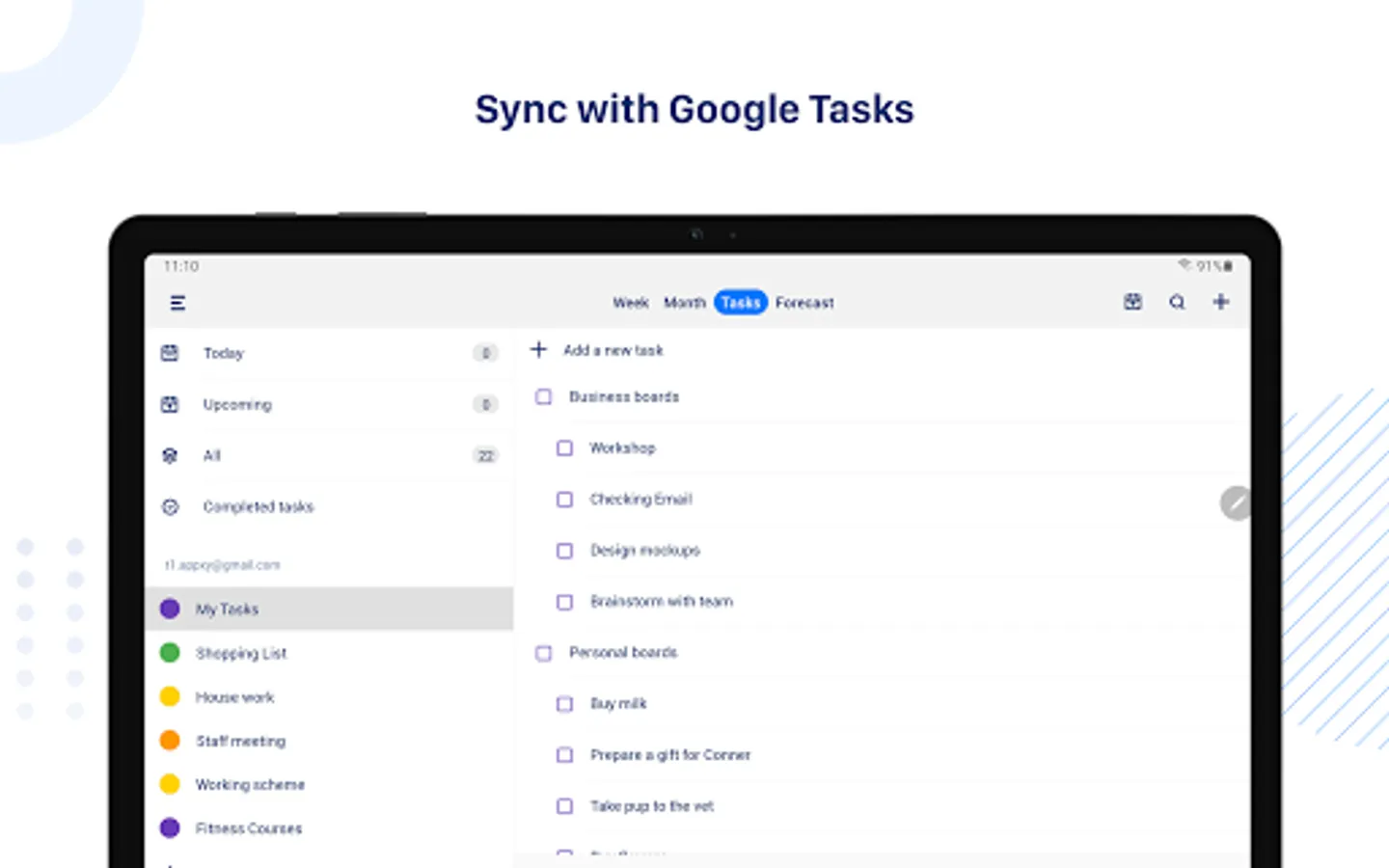 Tiny Calendar supports to read events from Google Calendar directly via Google OAuth, it also reads events from local calendar to supports events on Microsoft Outlook, Exchange and other calendars.