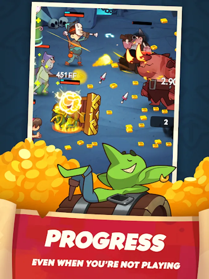 Nonstop fun is here. Your idle heroes team fights, dies, revives, and fights again even when you are away! The action never stops. Just come back when you feel like and tap to reap their rewards. Your champions will be fighting nonstop, while you take care of the strategy!
