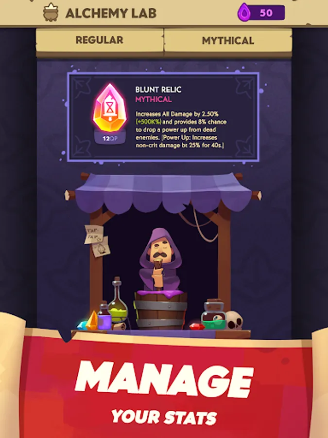 Eventually using upgraded Artifacts, you can also level them up automatically. You decide which upgrade is an incremental improvement to take on tougher enemies. After all, what would these Almost Heroes do without your strategic guidance?