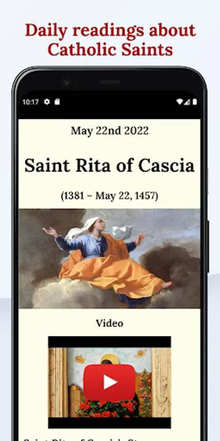 "Love this app a saint for every day with great detail about their life well worth downloading" - Teri mcg, GB