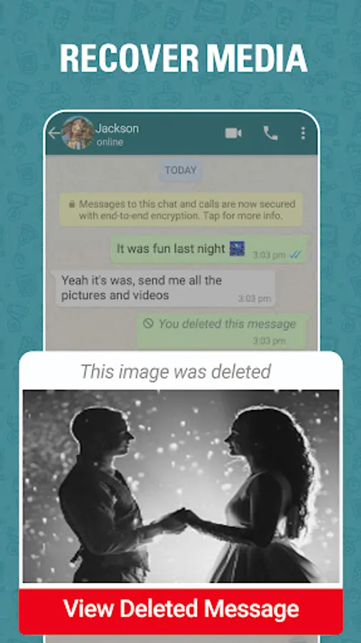 With recover deleted messages for whatsdelete: user can save deleted media, messages and it will notify user whenever any photo, audio, message, or video gets removed. Having Auto recover deleted messages you will save any media (Photo/Video) and messages for you. In Photo recover and status downloader it allows you to recover deleted photo and also save status of your loved ones. Whatsdelete recovery app is absolutely free app that helps user to monitor notifications and beside this saves all deleted media such as (Photo, Messages, videos, etc.). For recovering deleted media there is only one solution that is “Recover Deleted Message: Status Saver for whatsapp”. In Recover deleted app user can restore and recover any deleted media, messages easily. It is very irritating for many of us to see "This message was deleted" and you always have a curiosity that what was in deleted message. View recover deleted messages is feature in which user can view messages which are sent by someone are encrypted on mobile, so there is no other way to access messages/media directly. By having Recover deleted messages app it allows you to recover deleted media, messages and also it has an amazing feature of cleaner, file management!