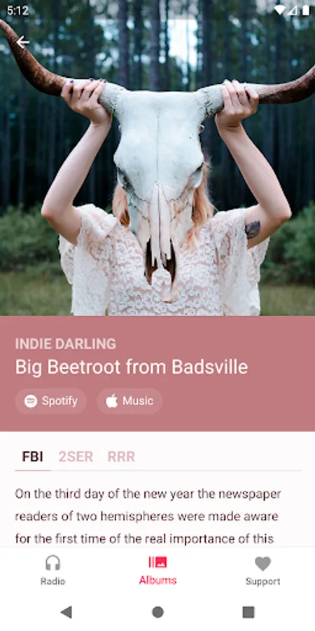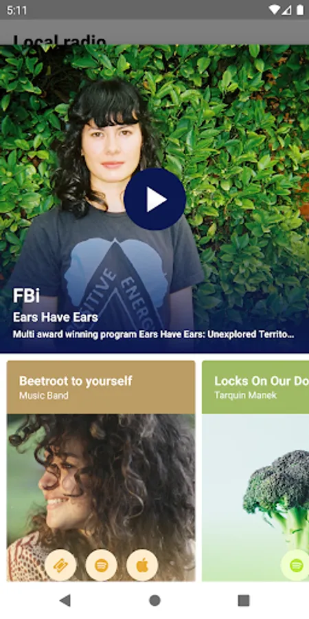 Listen to great Australian community radio like Triple J, Double J, 3RRR, FBi, 4ZZZ, 2XX, PBS, 2SER, Three D, and more! Beetroot'll remember your favourite stations and even recommend new ones based on your home state. Hear a cracking tune? Beetroot's got you covered. Find the artist on Spotify and iTunes, and get tickets to their next gig in one tap.