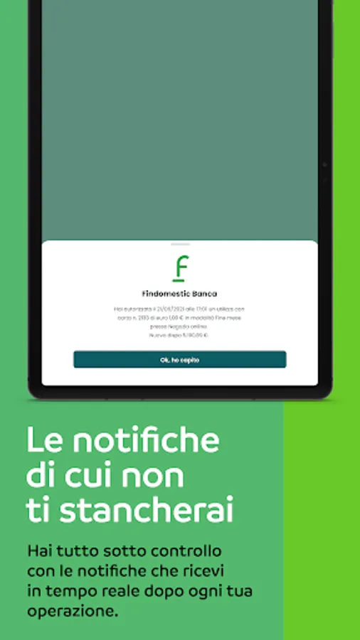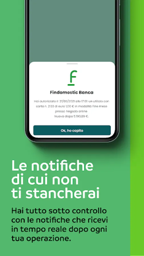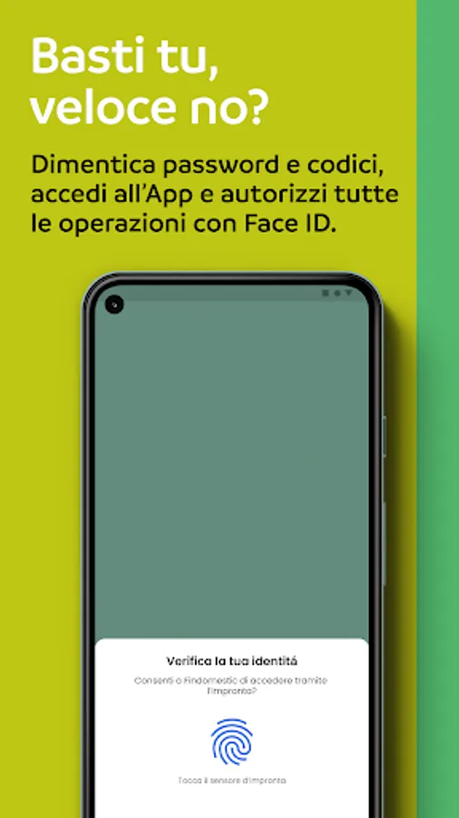 It's fast and secure and you do everything from mobile. You can forget passwords and codes, with Findomestic Banca Mobile App you can access your home banking and authorize all operations with biometrics.