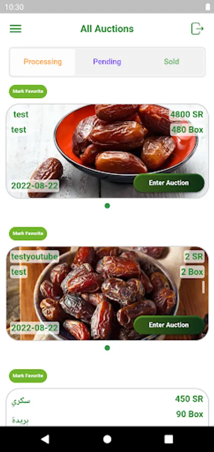 With Live Market KSA You can bid on goods( Dates ), seller will post ads about his goods, buyers will first register, recharge his wallet and then participate in auction, and person with higher bid will get those goods and amount will be deducted from his wallet.