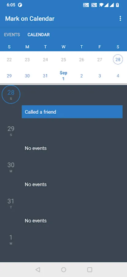 • See the events taking place in the app's calendar view: Browse thro' the past happenings in app's calendar view.