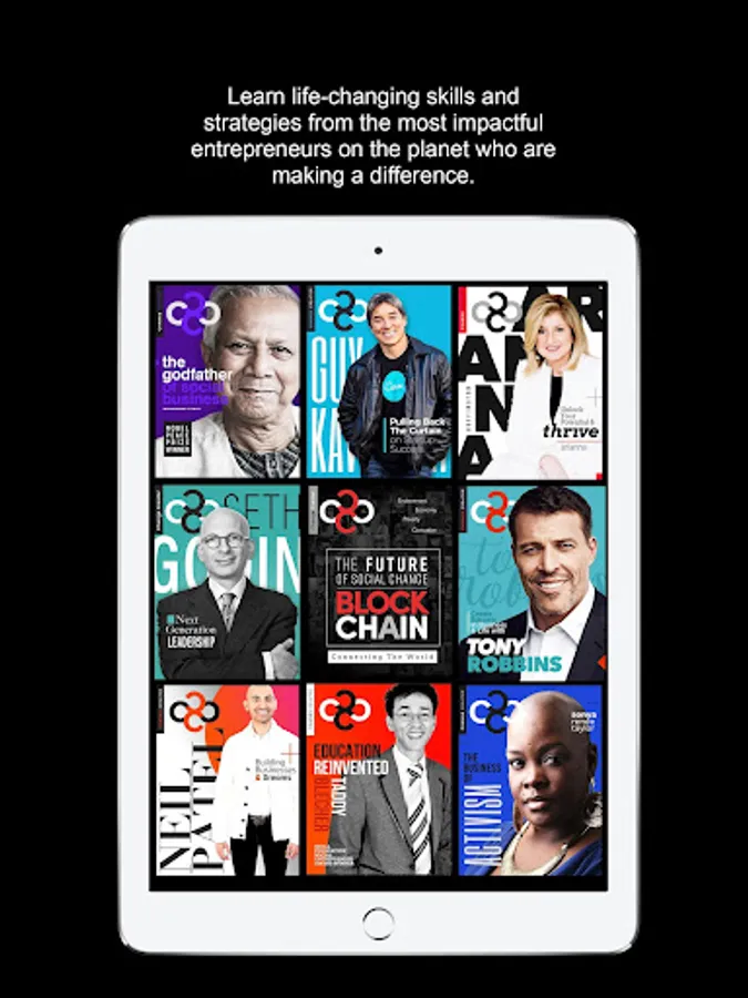 Get immediate access to more than 30 magazines of premium content sharing advice and strategies from interviews held with social entrepreneurs on the front lines and the top minds around the world such as Jay Shetty, Richard Branson, Tony Robbins, Arianna Huffington, Nobel Peace Prize winner Muhammad Yunus, Seth Godin, Eric Ries, and Ann Mei Chang.