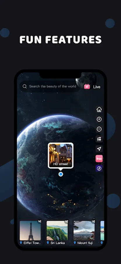 [Earth Map]: Provides 2D and 3D map modes. The 3D graphics effect formed on the high-definition map can be used to view the real earth and explore the corners of the world. Just type the name of your favorite place into the search box and it will give you 360-degree street locations and a clear picture of your area.