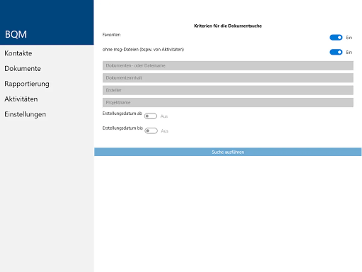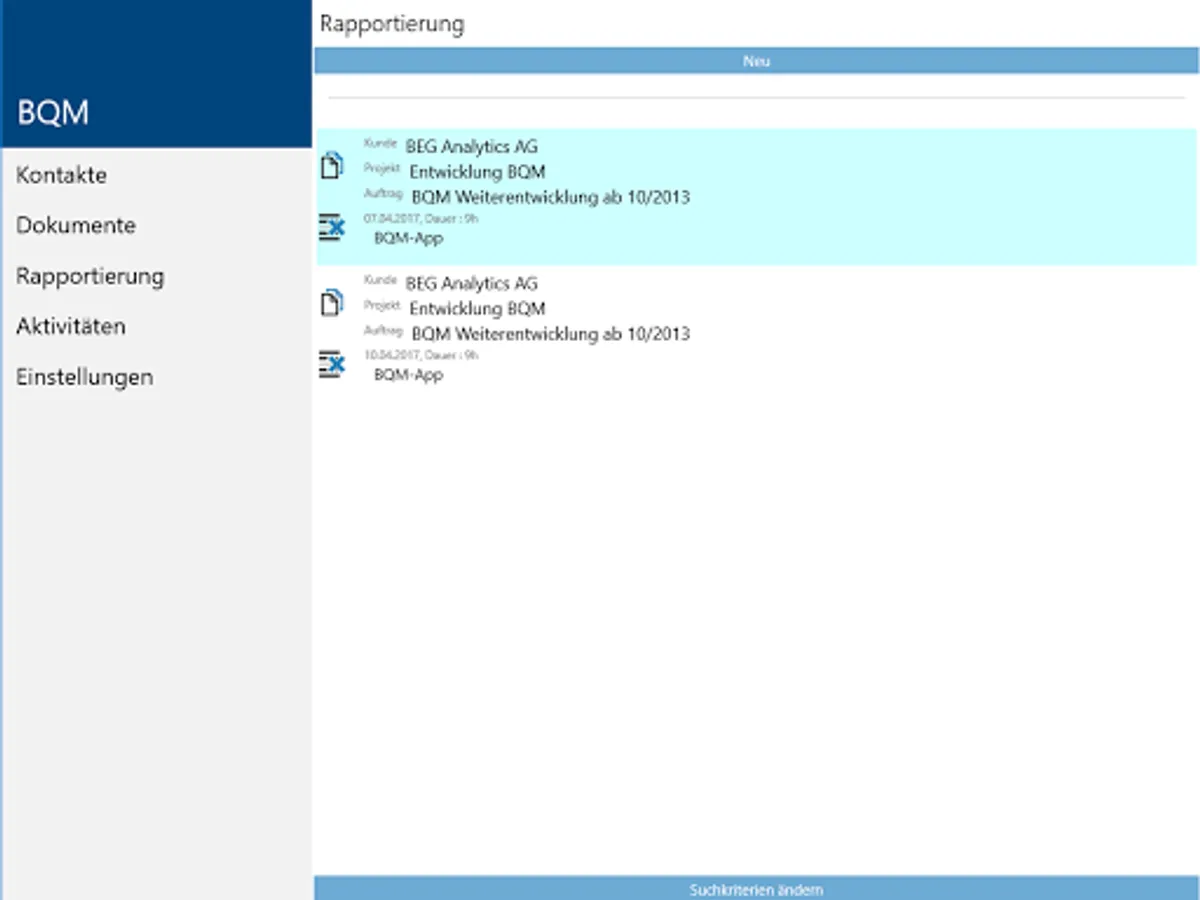 The Android app allows quick access and search for contacts, documents and activities of the BQM. In addition, services can be detected.