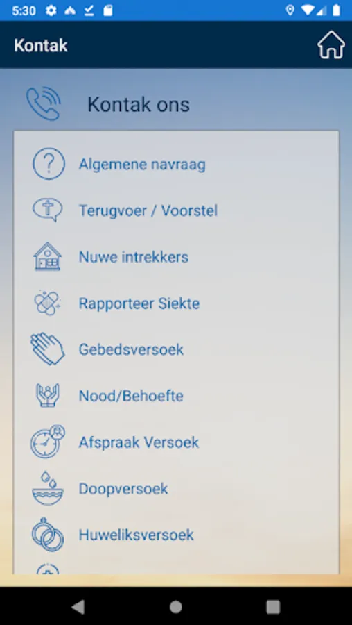 * Stel kerkleiers in kennis van siektes, ondersteuningsversoeke, besoek behoeftes, doopversoeke, dood of enige ander inligting, direk vanaf u slimfoon