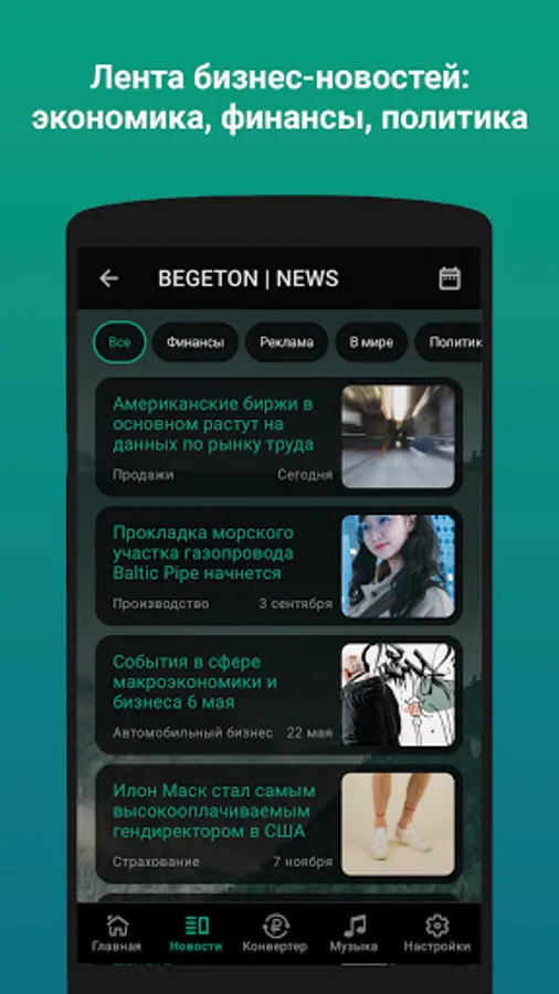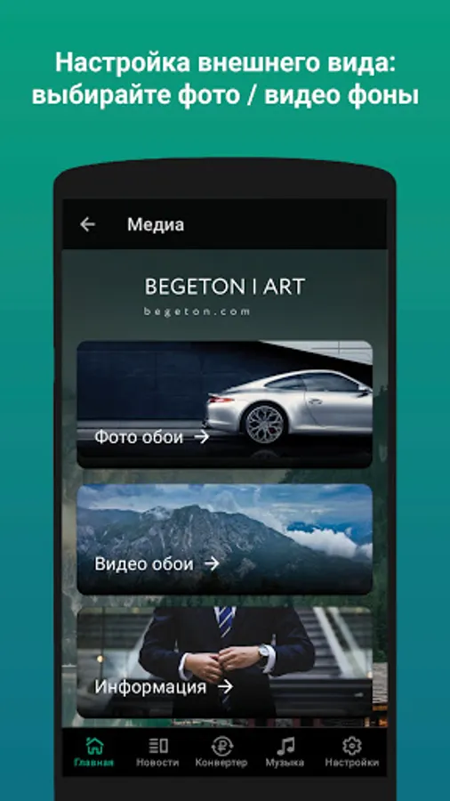 Life is not only work. BEGETON ART will help you relax, meditate or fall asleep after a busy day. We have added soothing music, animal and nature sounds to it for relaxation, meditation and sleep. We believe that it is necessary to keep abreast of business, but preferably without unnecessary worries. The built-in business informer will help you control only the most important things.