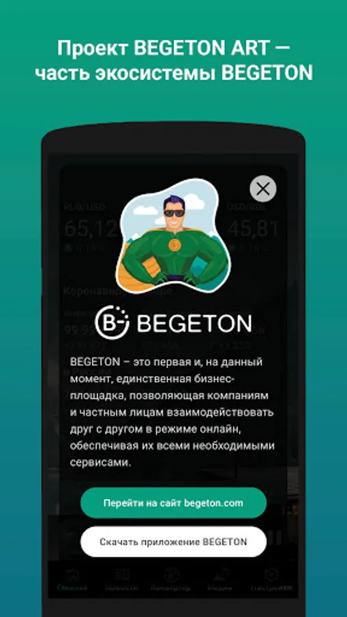 BEGETON ART is a stress-free business. It would seem an oxymoron. After all, the life of a businessman and investor, at first glance, is full of stress. It is important for us to follow the dynamics of the exchange rate, oil prices and other important figures. But you must admit that it is much more pleasant to do it without stress, in the most relaxed, meditative interface of the site and application, to the sounds of nature and soothing melodies.
