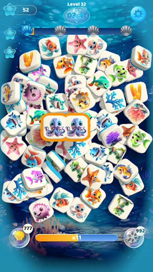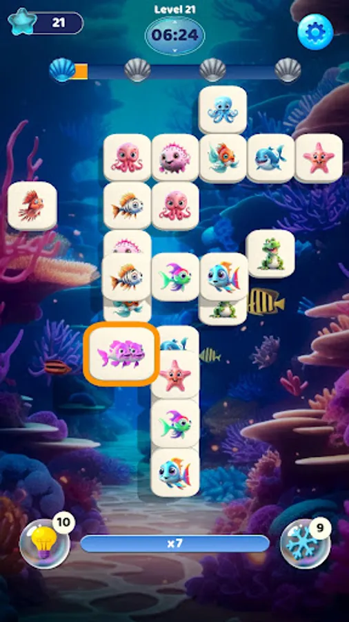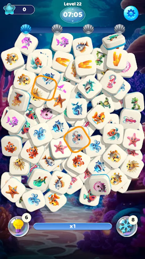 🐟 Match 2 creatures: Your task is to find and match two similar ocean fishes. Connect them by tapping, and watch them vanish from the screen. Easy peasy!