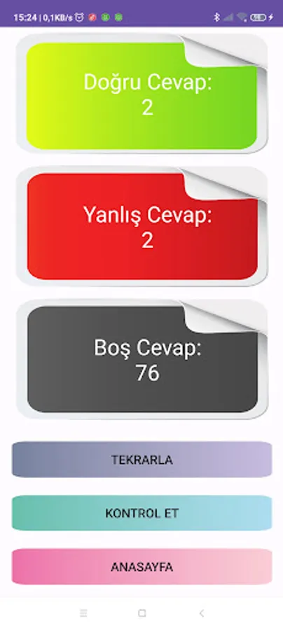 You do not need to search for a place for a practice exam. You can solve questions on the road, at home, in short, wherever you have free time. You will be able to see which question is correct, which question is empty and which question is wrong, and you will be able to identify your deficiencies.