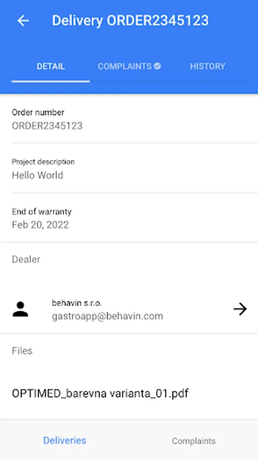 GastroApp is designed for manufacturing companies supplying specialized gastronomic equipment. The application records the delivered orders and allows the end customer to easily manage the information about the delivered goods and the settlement of claims.