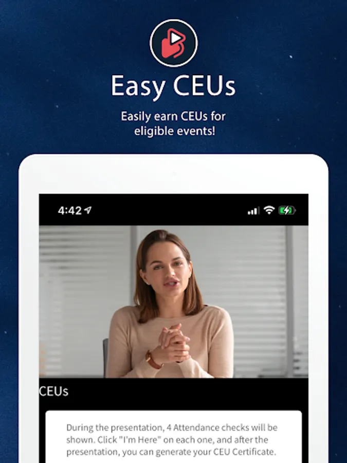 If you are virtual, you can access the same tools and additionally live video of the event. All your CEUs are stored in a single, convenient place!