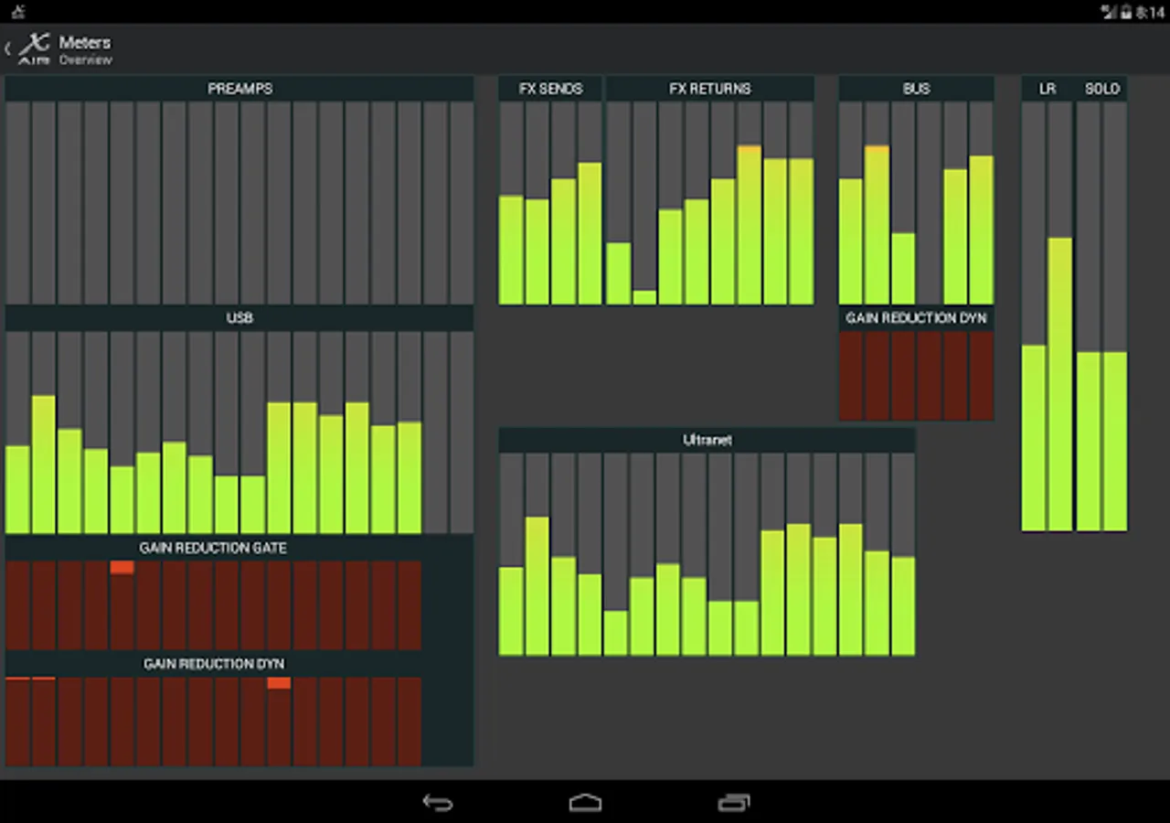 - Metering Overview – whether you use the Android® tablet or smartphone remotely or at the console, all levels at a glance