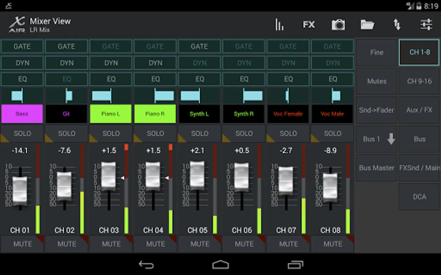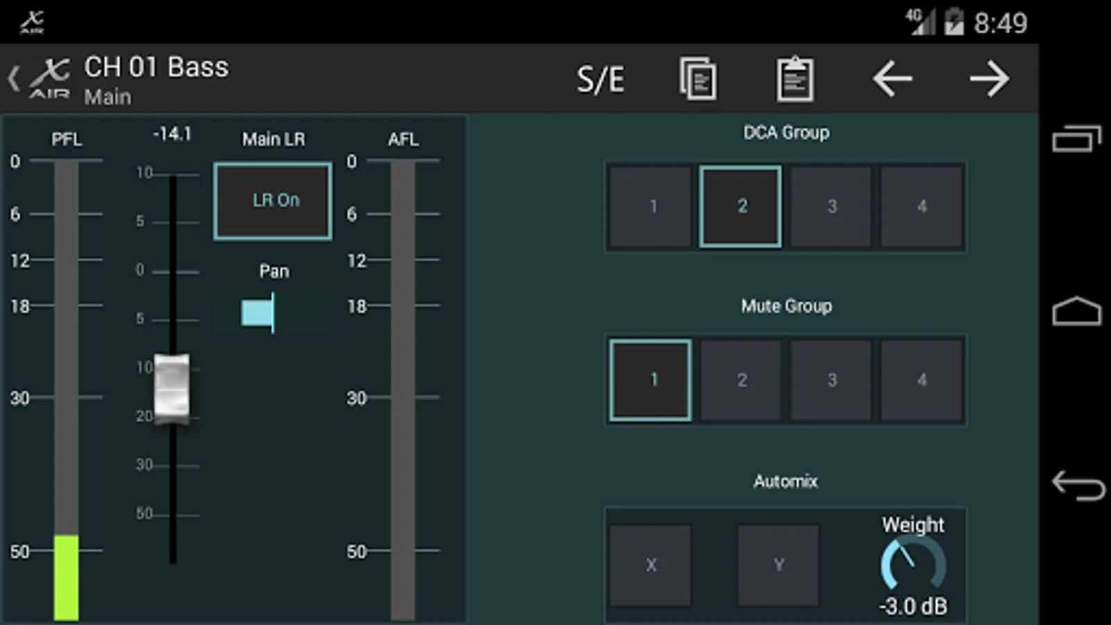 X AIR for Android® delivers comprehensive control for the X18, XR18, XR16, and XR12 mixers. The user interface is configurable for either simplified access or expert level editing (S/E), for mixing 18 input channels to 12 buses. Control is also provided for the 4 internal stereo effects processors – all of which feature the critically-acclaimed BEHRINGER X32 audio processing engine.