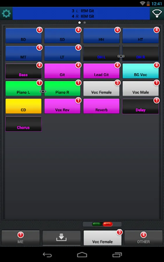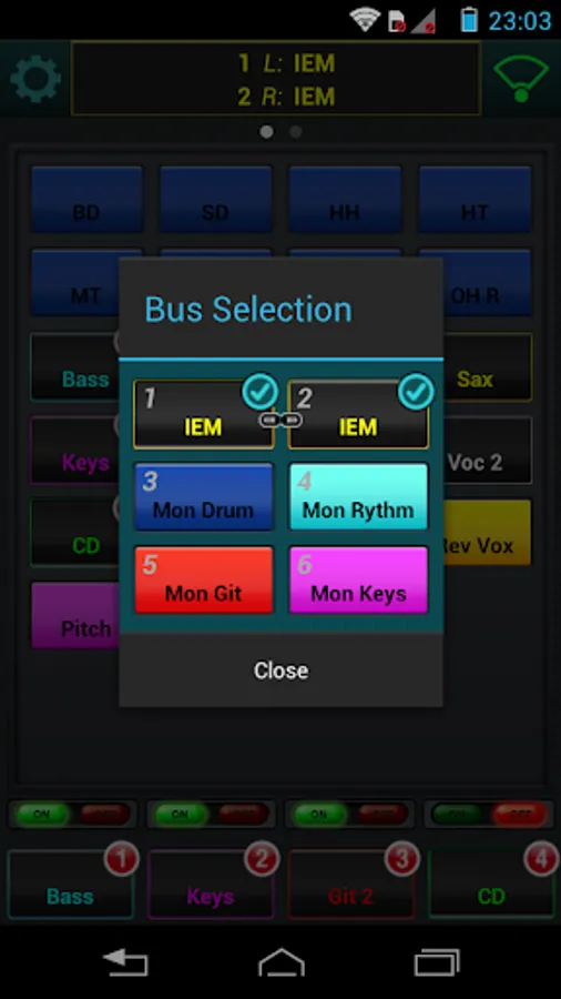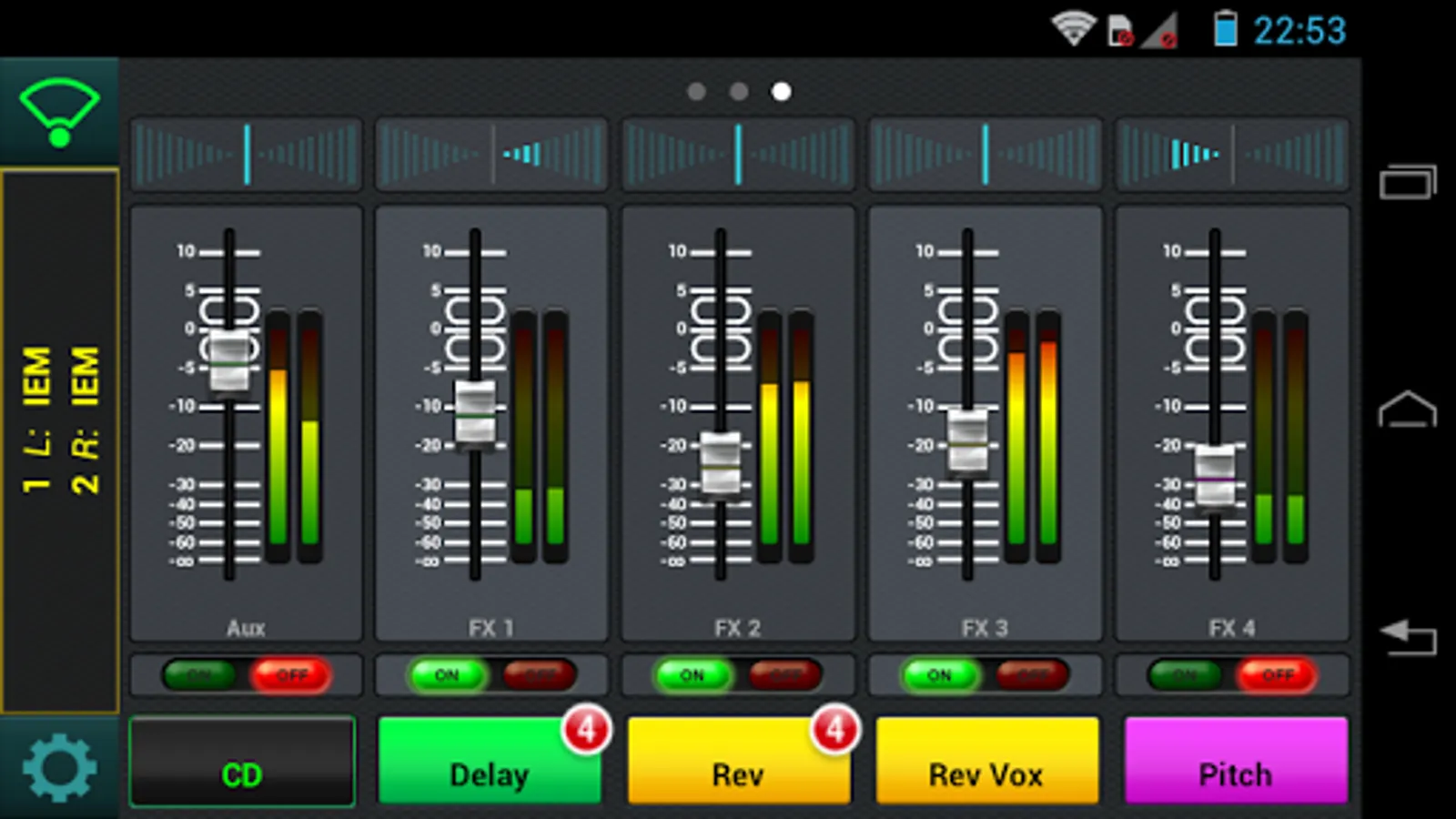 - Select the Aux Bus for your Personal Monitoring Control from your Android smartphone or tablet