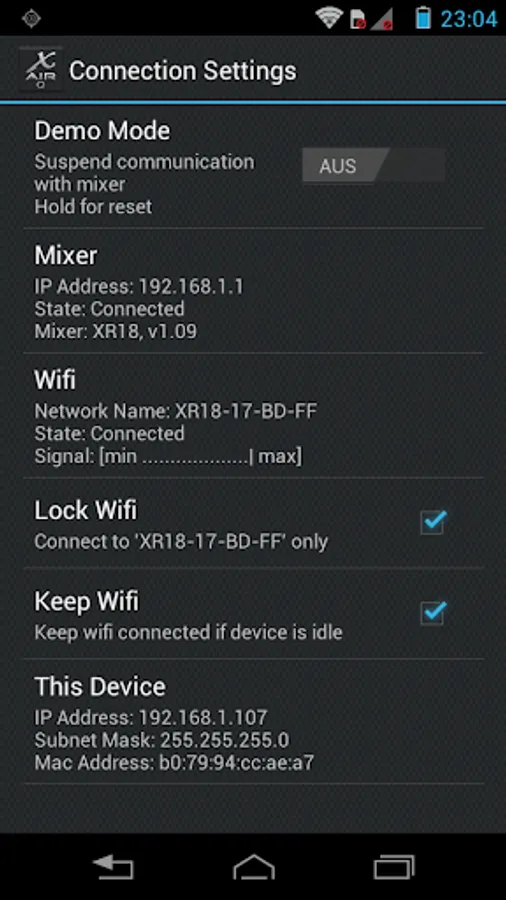 Compatible with Android versions 2.2 or higher and X AIR Mixer firmware versions 1.09 or higher.