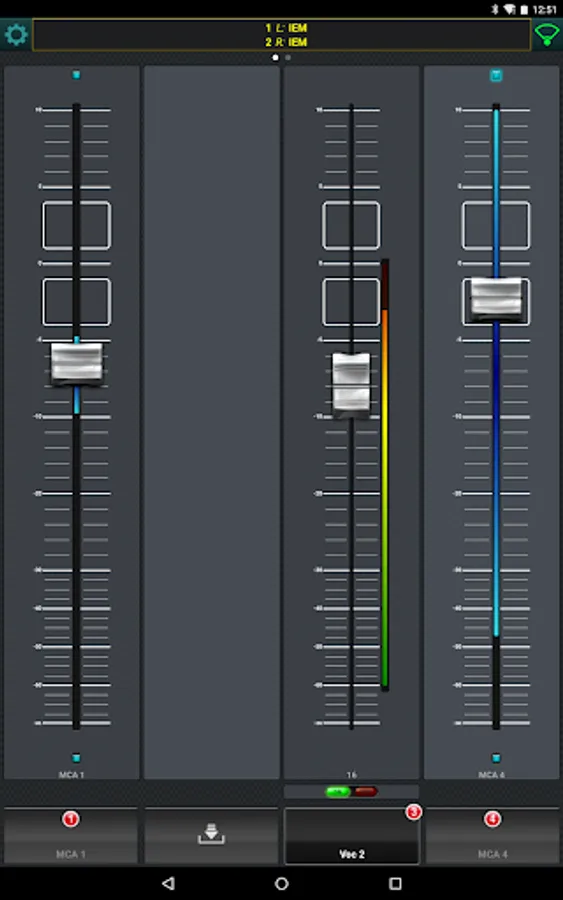 - Assign any combination of inputs to any of the four available MCA (mix control association) faders in the app