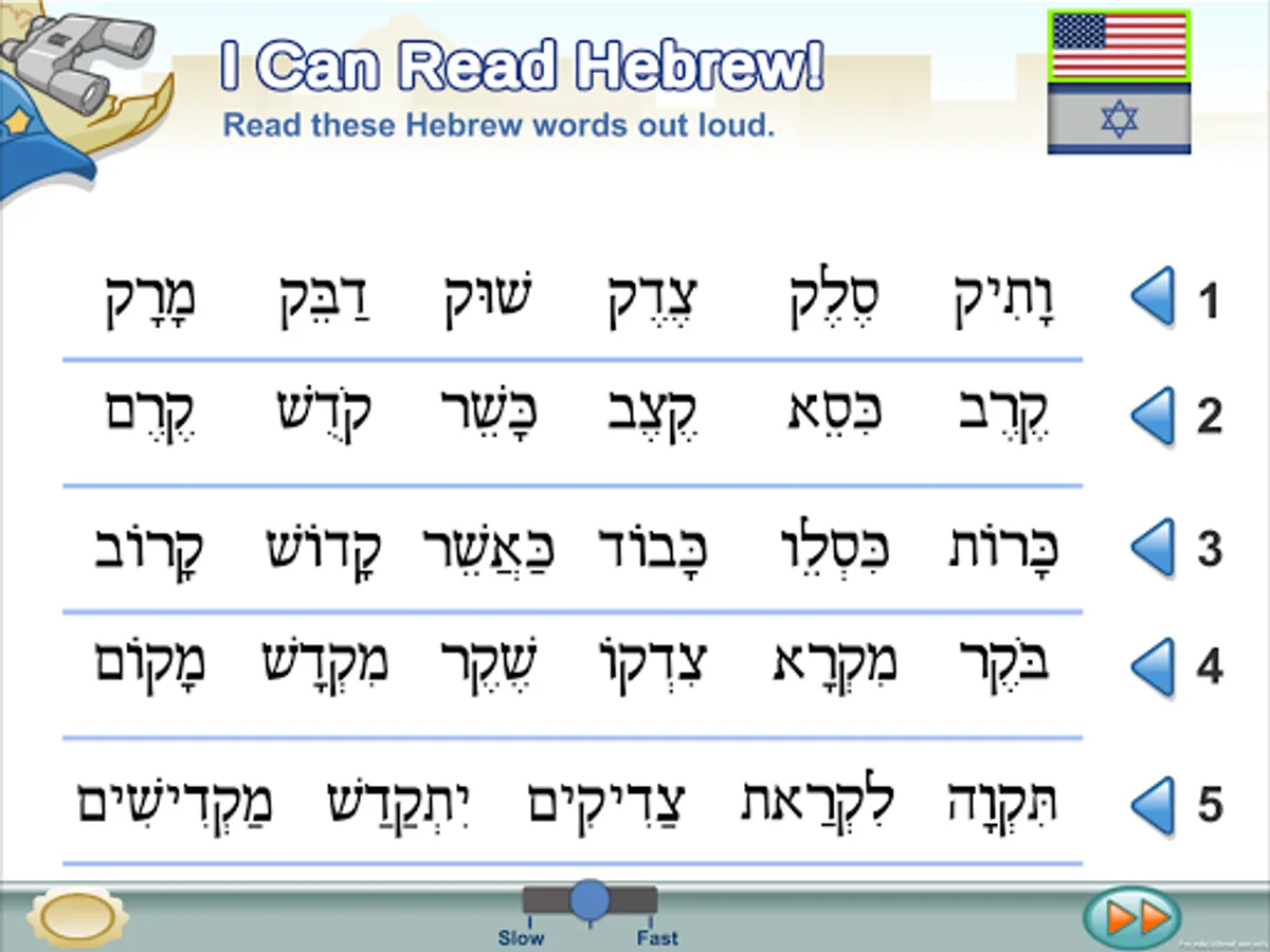 Alef Bet Quest's lessons on decoding and fluency unfold against a backdrop of cultural and modern Hebrew vocabulary, with an app adventure that takes students on a 20-stop tour through Israel. Students will develop a connection to Israel as they learn to read.