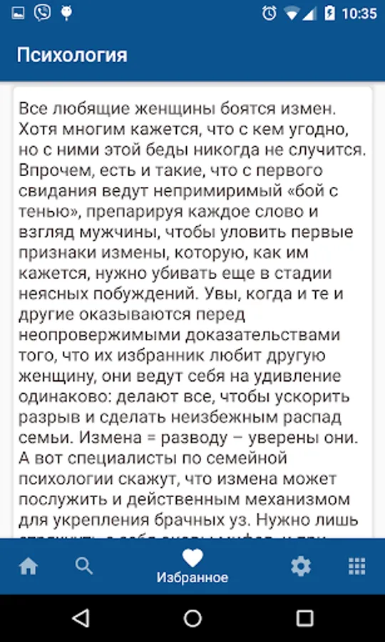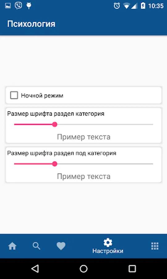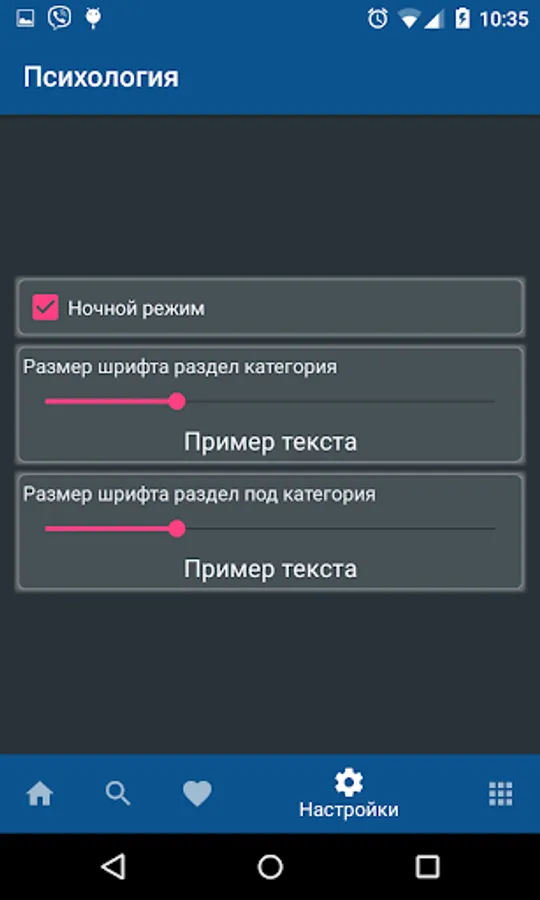 The application supports the "night reading" mode. The application remembers where you left off for each category. Thanks to this, you can resume reading from the same place later.