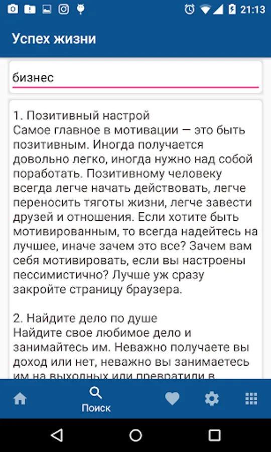 On the pages of this application you will find advice from world famous people who have made their dreams come true. As well as key answers to questions in such areas as: Self-development, Success, Productivity, Time Management, Business, Relationship, and many other useful techniques and practices in various areas of our lives.