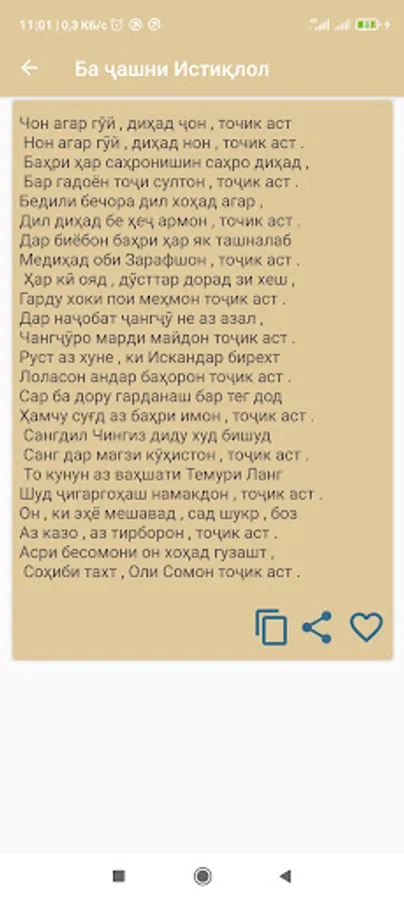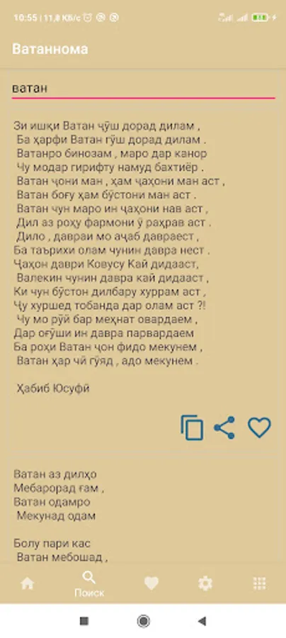 Dar in barnomai electroni she'ru gazalho dar vasfi vatandousti va takimi huvviyati milli az ash'or va ehodieti adibonu shoiron kam ovarda shudaast. Barnoma az khonibi Kumitai kor bo ҷavonon va varzishi nazdi Ҳukumati Ҷumҳhurii Tojikiston sokhta shuda, minbad niz rushd meyobad.