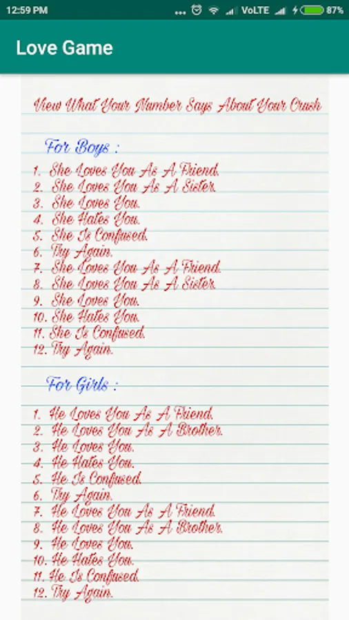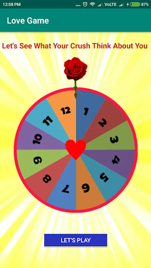 This Is A Simple Fun Game For Lovers. Let's See What Your Crush Or Lover Think About You. Let's Have Fun With Your Friends Anywhere, Anytime.