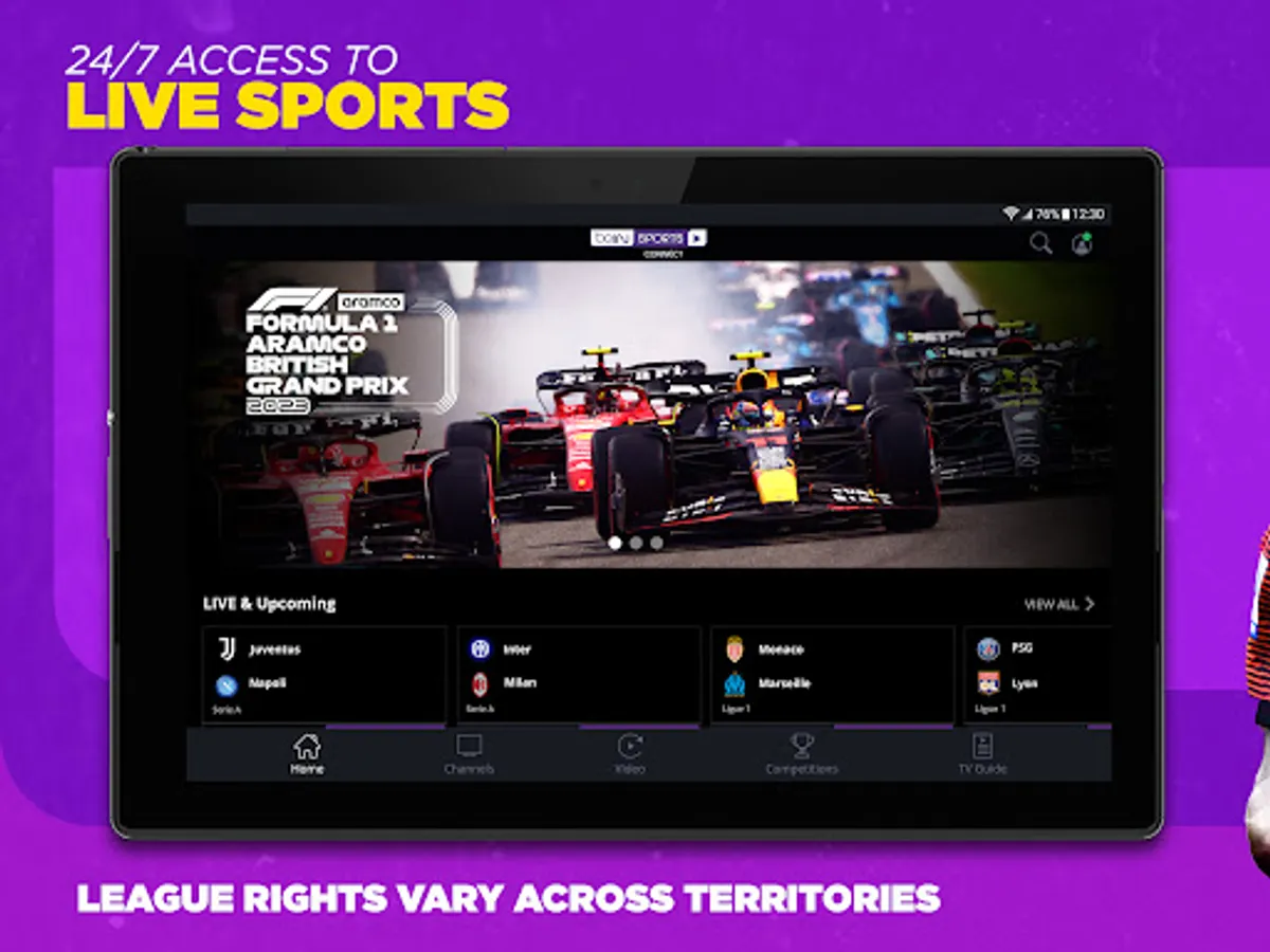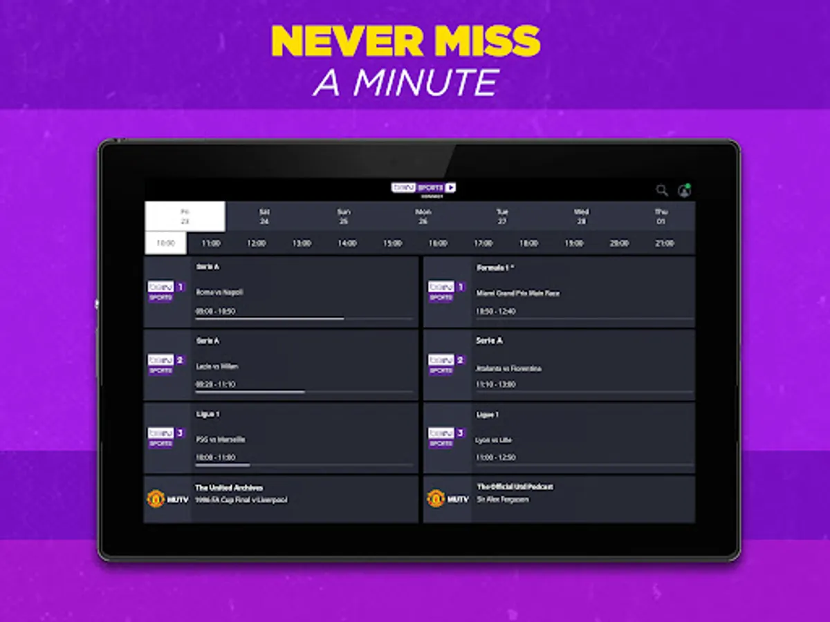 F1, UEFA Champions League, UEFA Europa League, Bundesliga, FA Cup, Serie A, Ligue 1, LaLiga, LFCTV, MUTV, ATP Tour, Australian Open, Roland-Garros & more