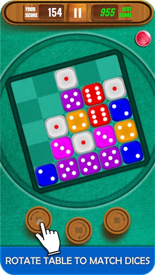 • Rotate the board to match same dices ( under the influence of gravity the dice fall down ).